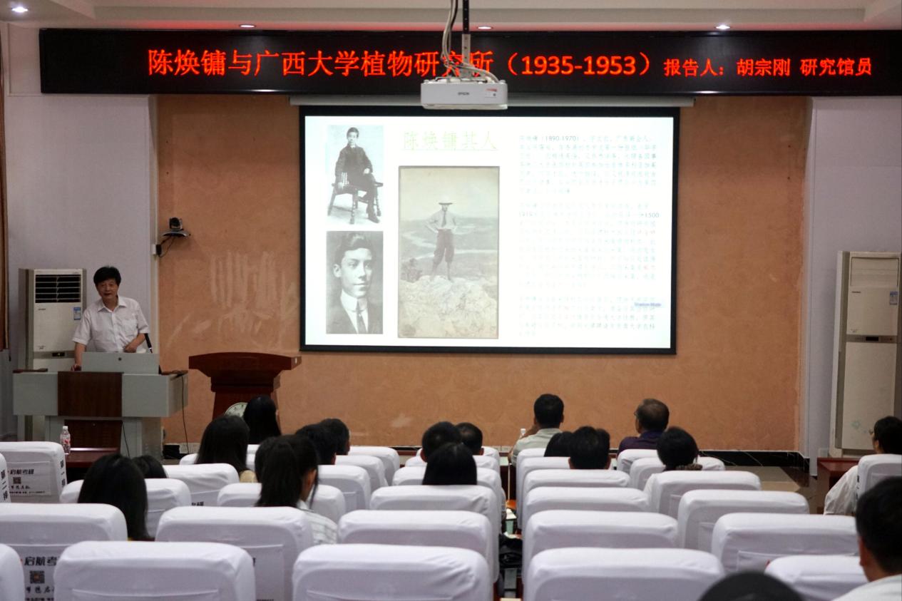 中国科学院庐山植物园胡宗刚研究馆员应邀担任主讲嘉宾,为师生带来题为《陈焕镛与伟德国际1946源于英国植物研究所(1935-1953)》的学术报告。学术报告由招礼军副院长主持,伟德国际1946源于英国、南宁植物园、广西森林生态监测中心、广西科学院、广西药用植物园、广西中医药研究院等单位的近百名专家学者和师生代表参与活动。