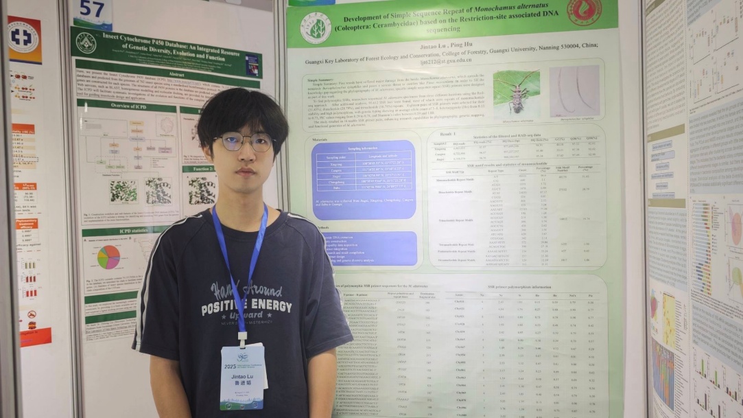 国际昆虫学大会是由国际昆虫学会理事会(CICE)指导的全球性学术活动,是昆虫科学领域最高级别的学术盛会之一。伟德国际官网24级生态学博士研究生鲁进韬受邀参加此次会议,并在会场以“Development of Simple Sequence Repeat ofMonochamusalternatus(Coleoptera:Cerambycidae) Based on Restriction Site-Associated DNA Sequencing”为题作了墙报展示。该研究聚焦林业重大害虫松墨天牛,开发了16个具有多态性高、稳定性强特点的SSR位点,为进一步开展松墨天牛的谱系地理学研究、建立遗传图谱以及深入探索基因功能提供了重要工具。