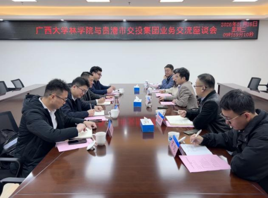 座谈会上,院长符韵林立足学院办学优势,从学科建设、科研成果转化、人才培养三个核心维度,全面介绍了学院服务地方林业产业发展的能力与优势。他重点强调,学院在森林培育、生态修复、林下经济高效开发、木材产业技术研发等领域积淀深厚,拥有一支高水平科研创新团队,积累了丰富的技术成果与实践经验,能够精准对接企业在产业升级中的技术与人才需求。此次走访核心目的是深化校企科创协同,学院将充分发挥科研创新与人才培育优势,重点围绕木材产业项目落地转化、林下经济模式优化与技术指导、智慧林业平台搭建等关键领域,与贵港市交投集团开展深度合作,以精准化科创支撑、专业化技术指导与高质量人才输送,助力贵港市林业产业提质增效,切实服务地方经济社会高质量发展大局。