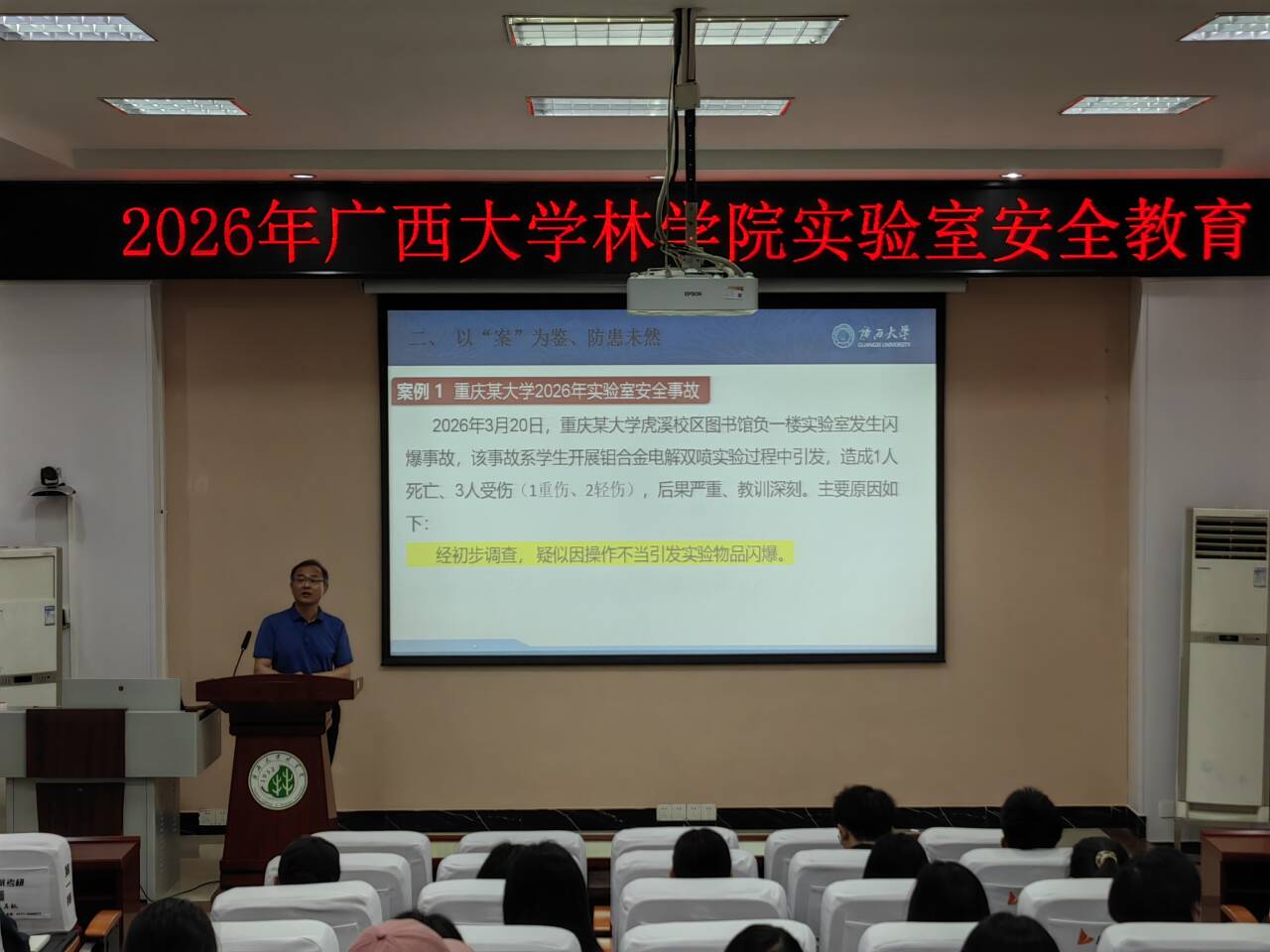 4月1日,学院2026年“实验室安全教育月”启动会在112报告厅举行。院党委书记黄里云出席启动会。
