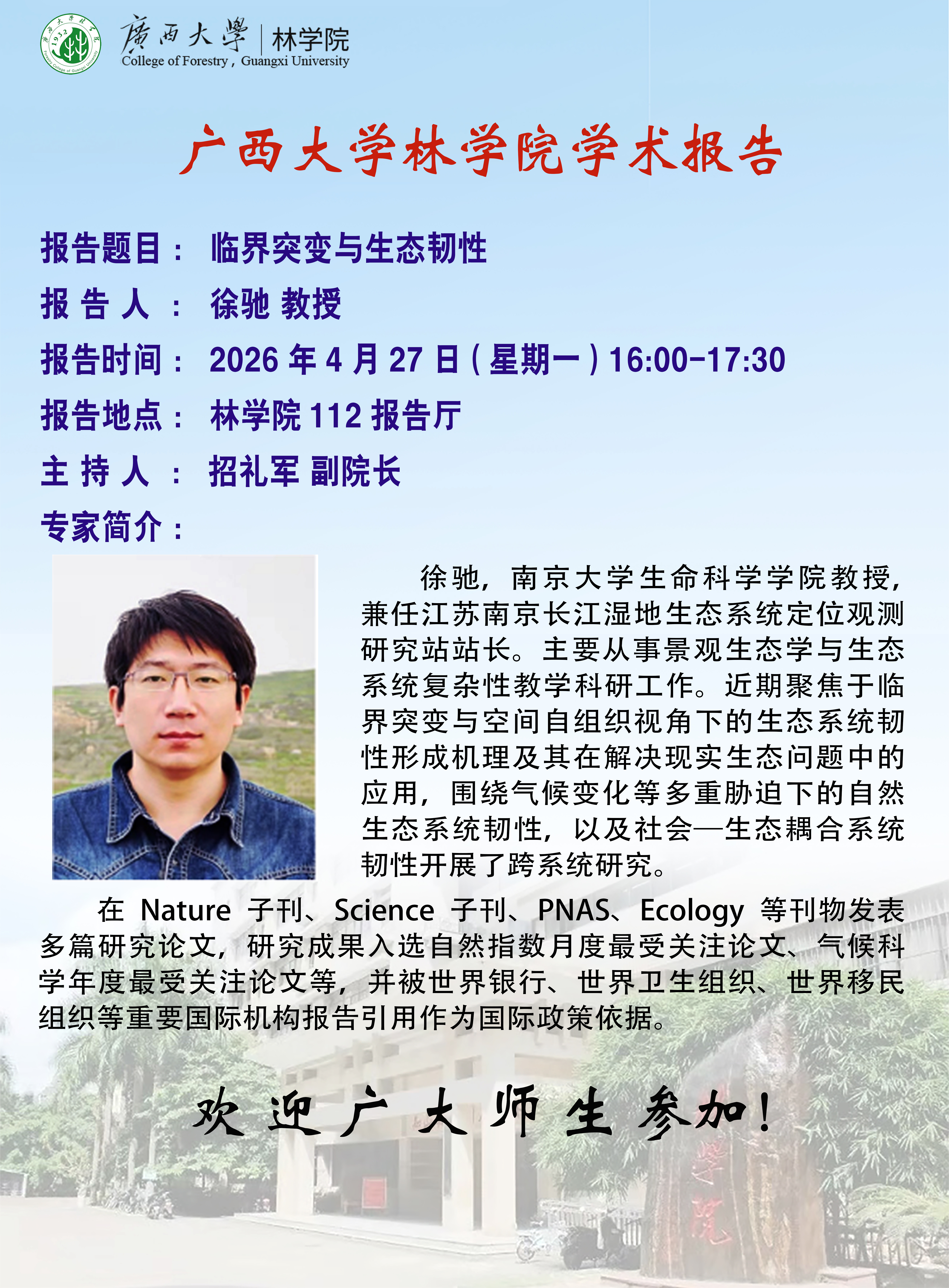 学术报告:临界突变与生态韧性