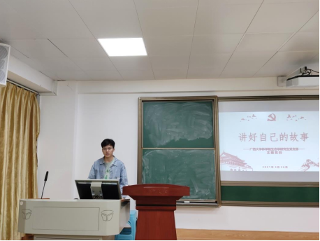 2018级硕士徐浩成同志讲解了在去年的抗洪救灾时期的故事,抗洪救灾的第一线我们不仅就可以看到人民子弟兵的身影,还可以看到一个个自愿参加的党员们,他们可能默默无闻,但是一旦群众需要他们,国家需要他们,他们总是第一时间挺身而出。